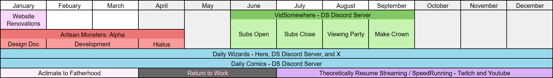 Streaming: will resume, but I won't have a schedule in place until Febuary (at the soonest).